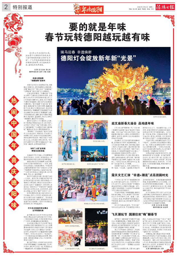 德阳灯会绽放新年新“光景” 飞天潮玩节 国潮狂欢“嗨”翻春节 露天文艺汇演 “非遗+潮流”点亮团圆时光 逛文庙新春大庙会 品地道年味