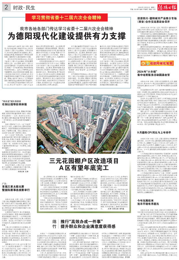 为德阳现代化建设提供有力支撑 投资四川·德阳城市产业推介专场 (西安)合作交流恳谈会召开 2024年“小升规” 集中培育服务活动圆满收官 石刻公园等你来体验 广汉:首届三星太极比赛 暨国际赛事选拔赛举行 三元花园棚户区改造项目 A区有望年底完工 9月德阳CPI同比与上年持平 今年汛期结束 我市平稳有序度汛 推行“高效办成一件事” 提升群众和企业满意度获得感